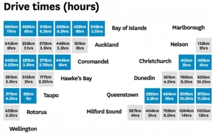 Las distancias en Nueva Zelanda son complicadas de transformar o plasmar en tiempo.