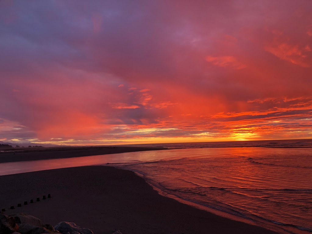 Sunset Point es un área de Hokitika Beach a unos 85 kilómetros de Punakaiki. En el punto donde el río se encuentra con el vasto océano es donde se encuentra Sunset Point. En este punto te sentirás como si estuvieras al borde del mundo, contemplando una puesta de sol que parece que va a durar para siempre. Nunca deja de deslumbrar los sentidos con su belleza natural.