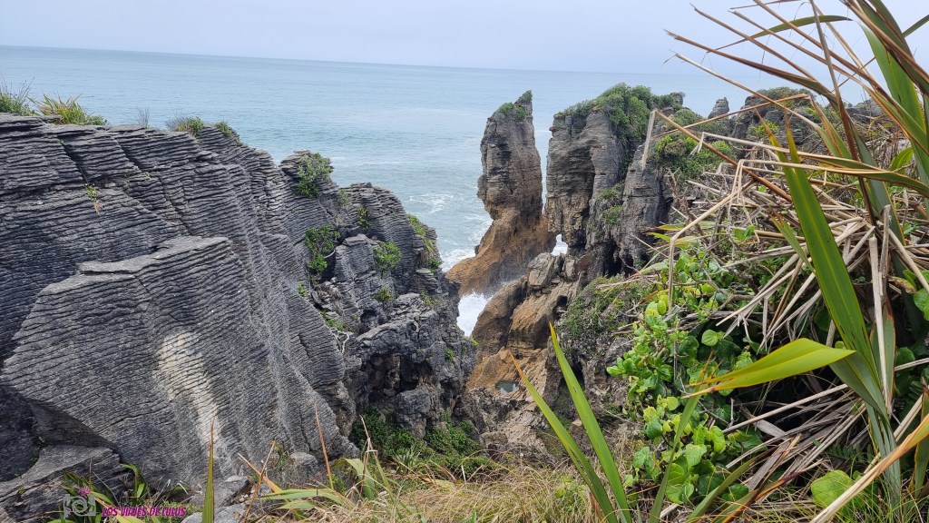 Salimos del camping en dirección a Punakaiki para ver las Pancake Rocks and Blowholes Track, es el nombre del camino circular que te lleva hasta las Pancake Rocks, es un paseo de unos 20 minutos.